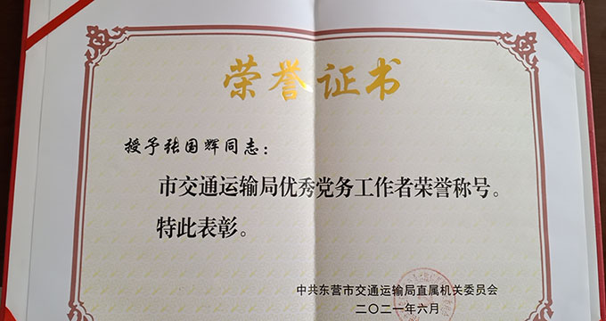 • 張國(guó)輝榮獲“市交通運(yùn)輸局優(yōu)秀黨務(wù)工作者”